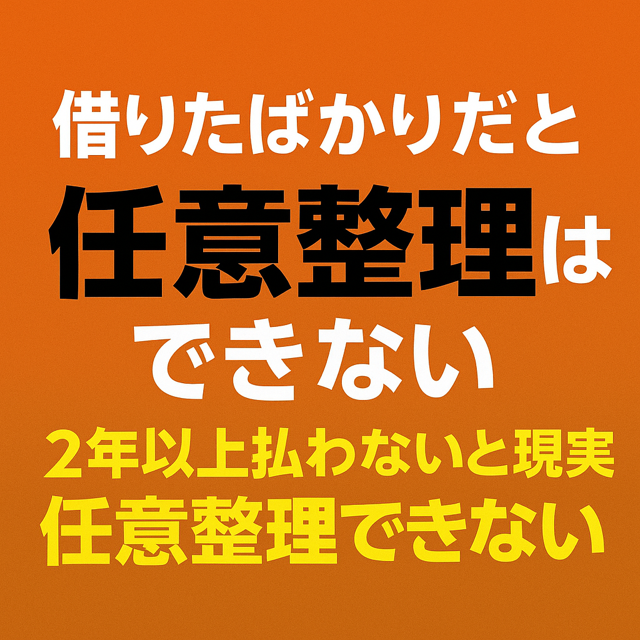 任意整理は万能ではなく、借りたばかりではほぼ不可/2年以上の返済実績が目安という現実があります。延滞や法的手続きが進むほど、打ち手は減少。