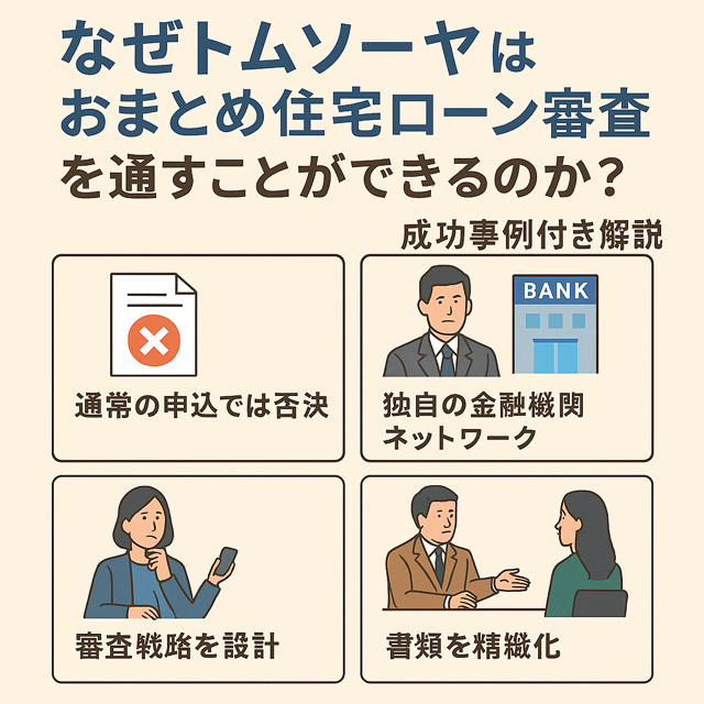 多重債務を抱える方にとって「おまとめ住宅ローン」は、家を守りながら生活を立て直す大きなチャンスです。一方で、銀行窓口経由の一般申込では、過去の延滞や返済負担率の高さなどを理由に否決となるケースが少なくありません。本稿では、株式会社トムソーヤがどのように審査を突破しているのか、その具体策と成功事例をお伝えします。