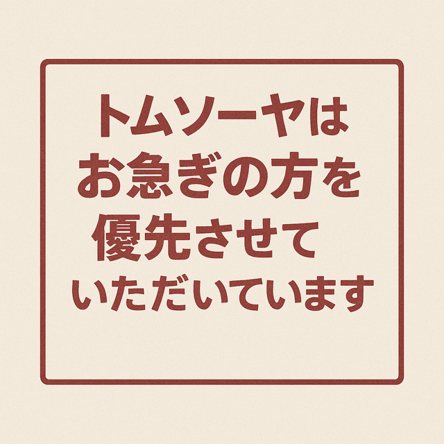 トムソーヤはお急ぎの方を優先させていただいています