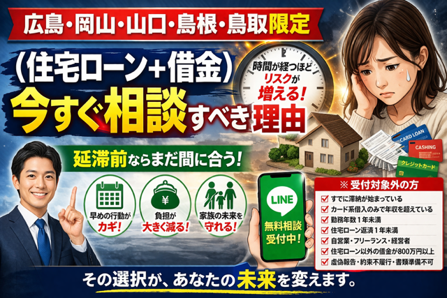 #住宅ローン一本化 #借金相談 #多重債務解決 #トムソーヤ #自己破産#弁護士 #福山市 #広島市#倉敷市#中国5県全域対応