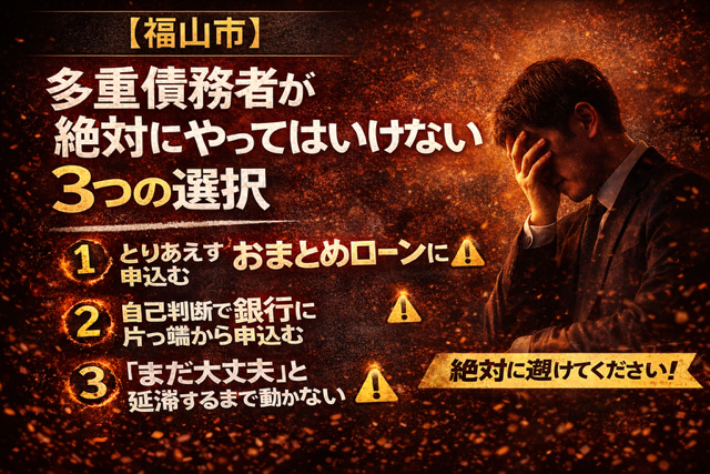しかし一方で、 「知らずに選んだ行動」たったひとつで、その道が完全に閉ざされてしまう人もいます。 今回は、福山市で実際に多い失敗をもとに、 多重債務者が絶対にやってはいけない3つの選択をお伝えします。