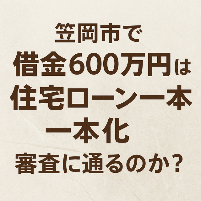 笠岡市で借金600万円を抱えていても、延滞がなく、年収倍率や担保余力が許容範囲であれば、住宅ローン一本化審査に通る可能性はあります。