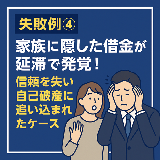 今回は、家族に借金を隠し続けた結果、延滞で発覚し、自己破産に追い込まれたDさんの失敗例をご紹介します。