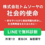 LINEで無料診断私たち株式会社トムソーヤは、住宅ローンを抱え借金問題に苦しむ方々が「家を守りながら生活を立て直す」ための新しい道を切り開く、社会性の高いサービスを中国地方全域に展開しています。